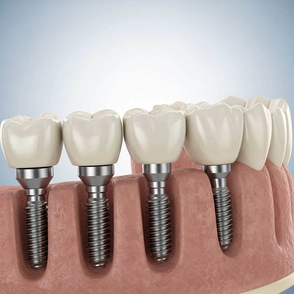 Multiple dental implants are permanent, titanium-based replacements for missing tooth roots that support crowns, bridges, or full-arch restorations.